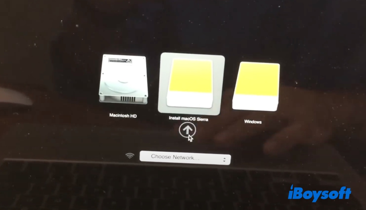 - Wählen Sie den bootfähigen macOS Sierra Installer und klicken Sie auf den Bildschirmpfeil.