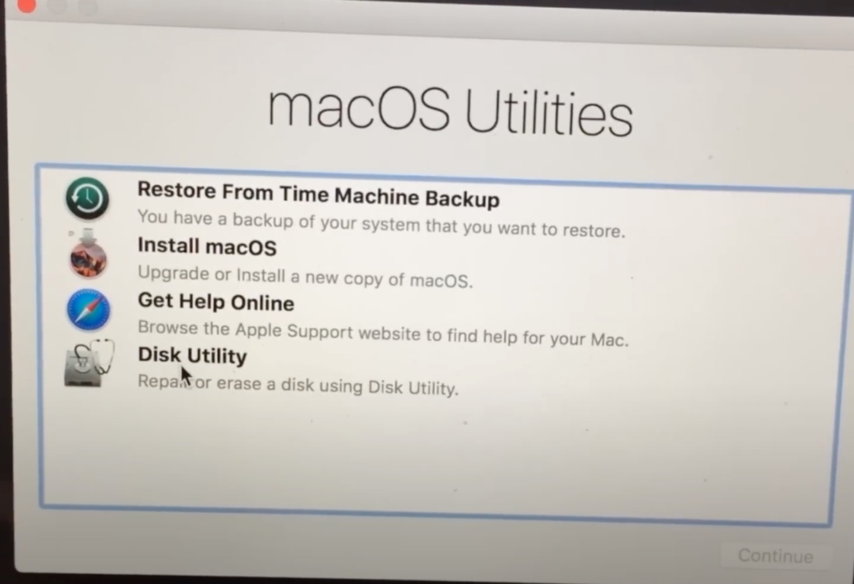 - Wählen Sie im Dienstprogrammfenster Installieren von macOS Sierra aus und klicken Sie auf Fortfahren.