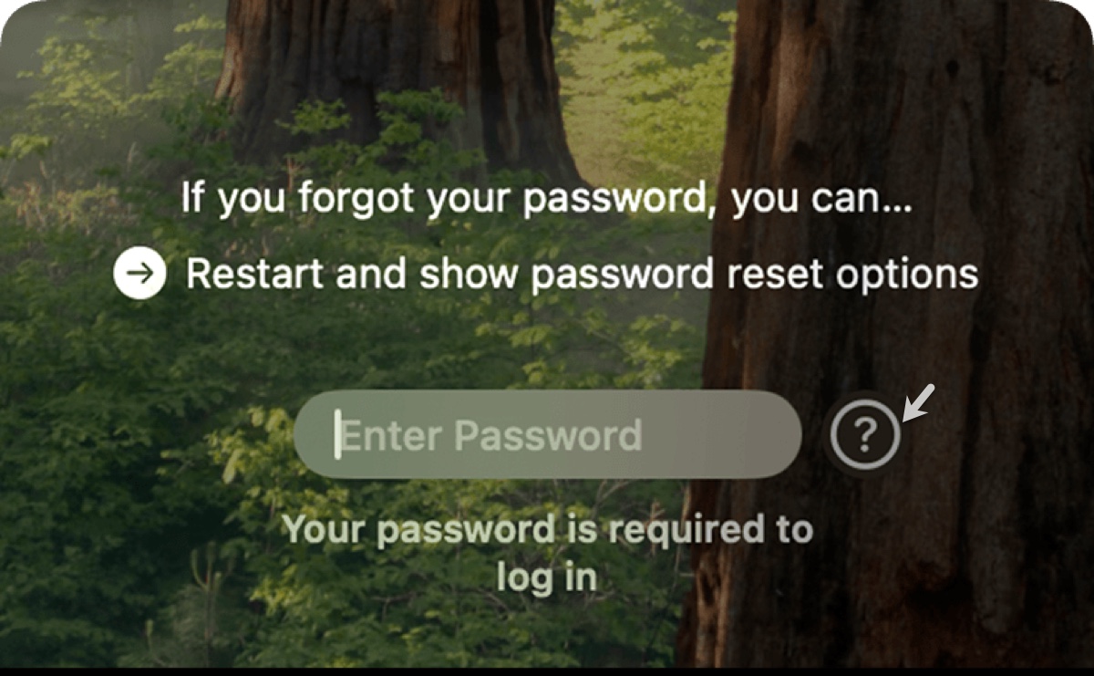 Ein gängiger Weg, um Ihr MacBook zu entsperren, wenn Sie das Passwort vergessen haben, besteht darin, auf das Fragezeichen neben dem Passwortfeld zu klicken und der Passworthinweis oder Reset-Meldung zu folgen. Einige Benutzer finden jedoch möglicherweise kein Fragezeichen oder haben keine Optionen zum Ändern des Passworts, auch nachdem sie das falsche Passwort dreimal eingegeben haben.