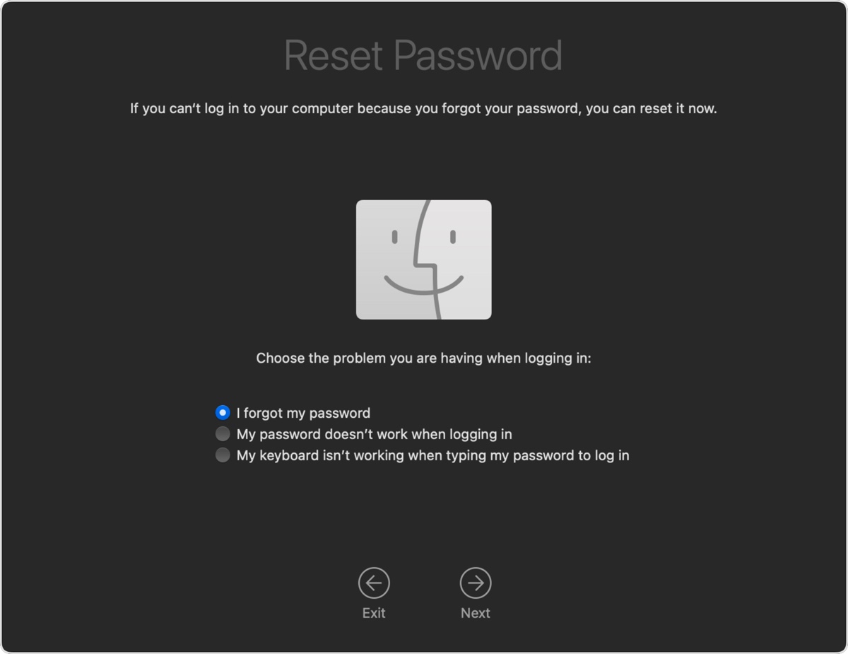 Alternativ können Sie den Wiederherstellungsmodus verwenden, um das Passwort auf einem MacBook oder einem Desktop-Mac zurückzusetzen, wenn Sie das Mac-Anmeldepasswort vergessen haben. Dies ist die beste Option, wenn Sie das MacBook-Passwort vergessen haben und kein Fragezeichen gefunden haben.