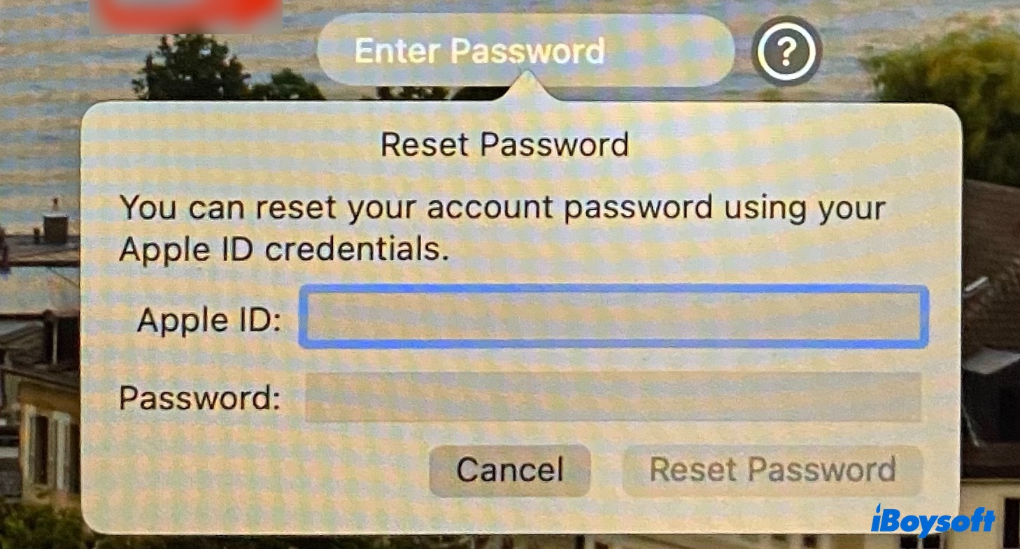 Wenn Sie FileVault eingerichtet haben, können Sie nicht in den macOS-Wiederherstellungsmodus gelangen, ohne das Anmeldepasswort für das ausgewählte Konto einzugeben. Um das Passwort zu ändern, können Sie unter Ihrem Benutzerkonto auf "Passwort vergessen?" klicken und dann den Bildschirmanweisungen folgen, um ein neues Passwort zu erstellen.