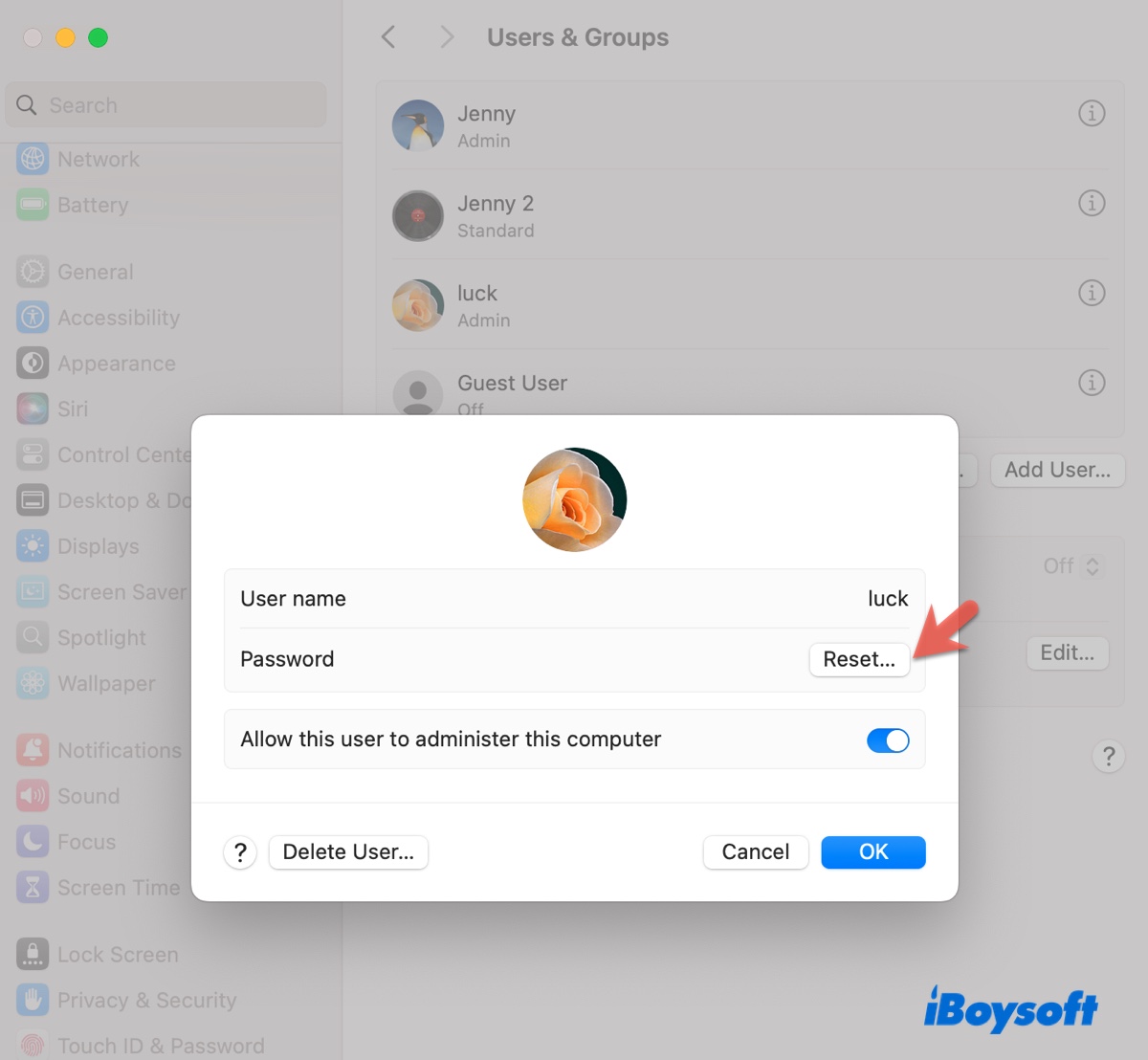Weg 4: Setzen Sie das Apple MacBook-Passwort mit einem anderen Administrator-Konto zurück