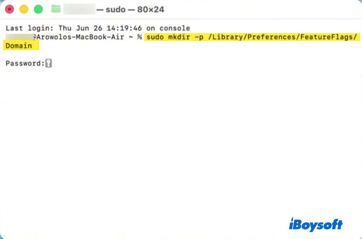 sudo mkdir -p /Library/Preferences/FeatureFlags/Domain