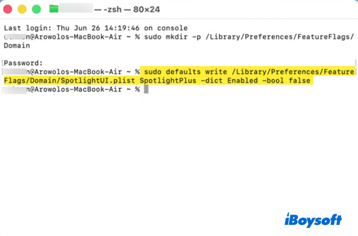 - Führen Sie den folgenden Befehl aus, um die neue Spotlight-Benutzeroberfläche zu deaktivieren.