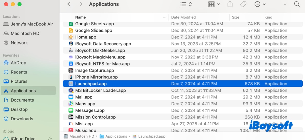 Auf macOS Sequoia oder früher ist Launchpad eine Systemanwendung, die nicht deinstalliert werden kann. Wenn es aus dem Dock verschwindet, liegt dies normalerweise an versehentlicher Löschung. Sie können Launchpad mit den folgenden Schritten zurückholen: