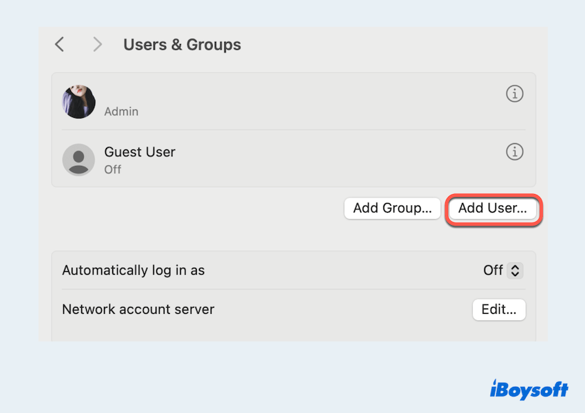 - Menú de Apple > Preferencias del Sistema> Desplázate hacia abajo y haz clic en Usuarios y Grupos.
