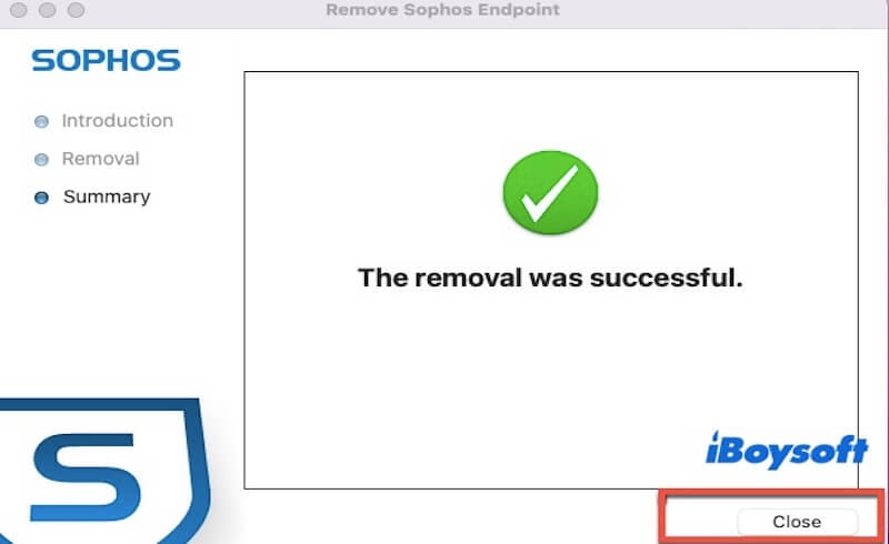 - La herramienta de desinstalación oficial desinstalará automáticamente Sophos Home para Mac. Una vez finalizado, haz clic en Cerrar para salir del procedimiento.