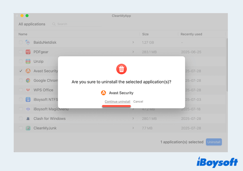 Ahorra tiempo y esfuerzo, simplemente con unos clics, CleanMyApp destaca especialmente en la eliminación profunda, completa y privada de aplicaciones como Avast Antivirus en sí y los restos persistentes. Desinstalemos Avast con él~