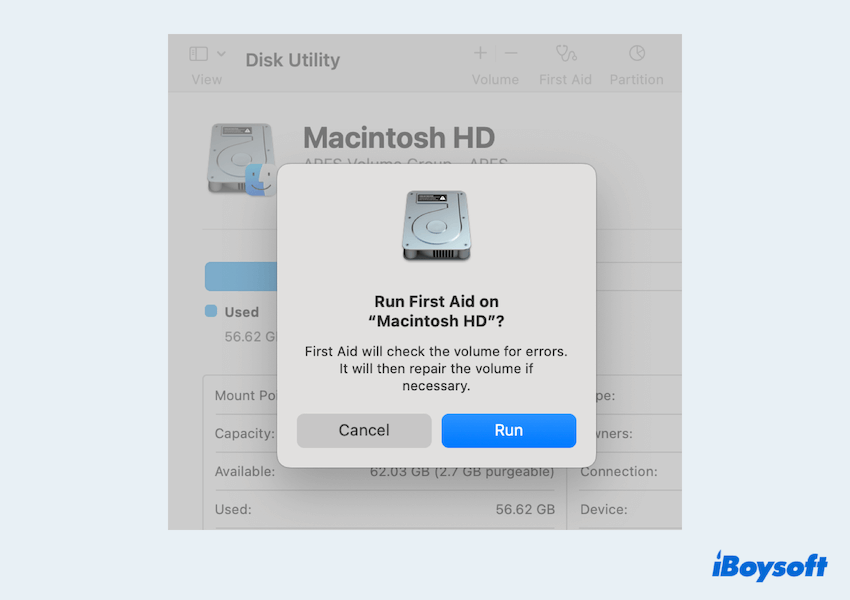 O puedes entrar en Modo de Recuperación de macOS > Utilidades > Utilidad de Discos > Primeros Auxilios > Ejecutar.