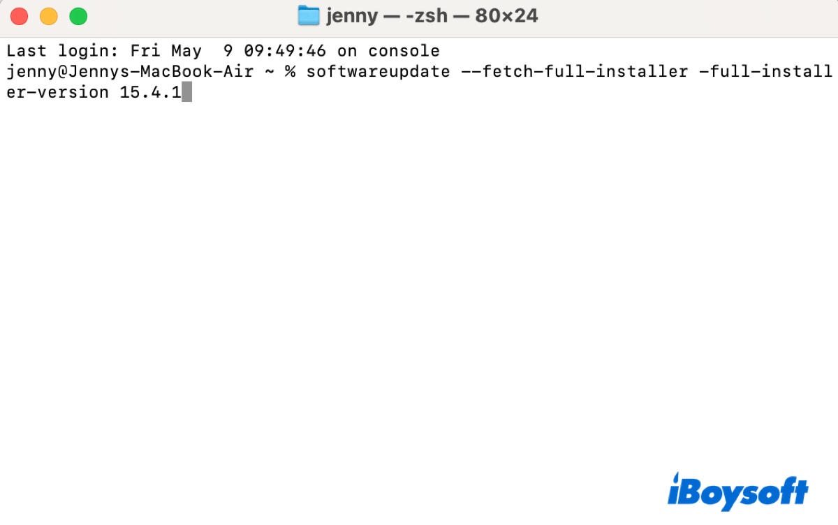 Instalar desde Terminal es una solución común para todos los problemas de actualización de macOS Sequoia 15.7. Si no puedes actualizar a Sequoia desde Actualización de Software, prueba los pasos a continuación para descargar e instalar macOS 15.7 desde Terminal: