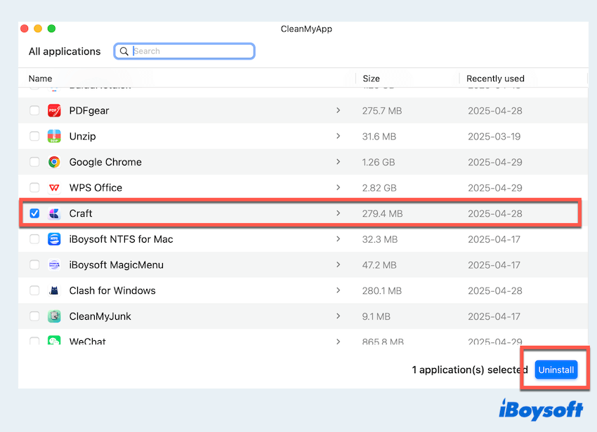 CleanMyApp hace todo el trabajo pesado en unos pocos segundos, y el uso conveniente facilita encontrar y eliminar aplicaciones sin confusión. ¡Descárgalo y pruébalo! Puedes compartir esta herramienta para ayudar a más usuarios.