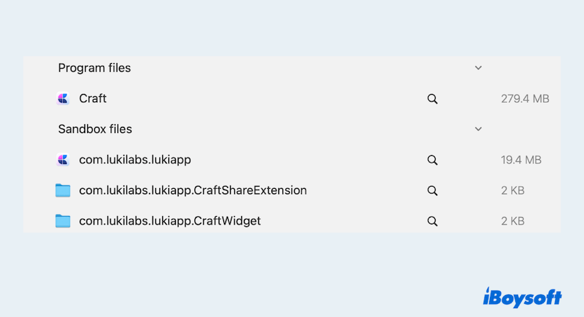 Puedes usar la barra de búsqueda de Finder y escribir "Craft" mientras filtras por "Biblioteca" para localizar los archivos restantes más rápido. No olvides vaciar la Papelera al final.