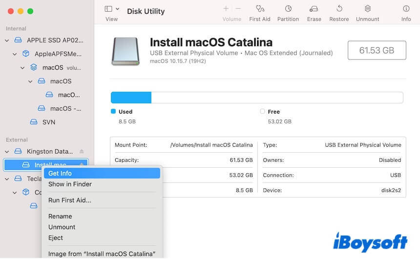 Si aparece en Utilidad de Discos, ahora ve a comprobar si el instalador USB de Catalina es arrancable o no.