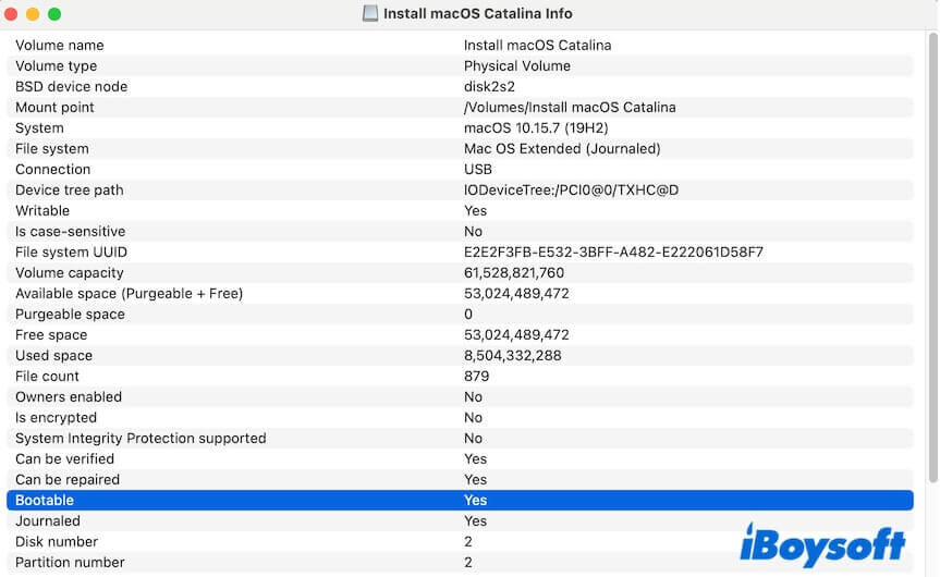 Verifica si el instalador USB de Catalina es realmente no arrancable