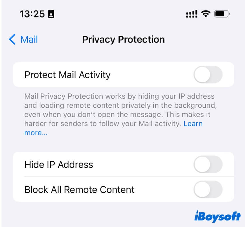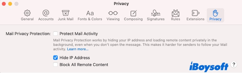 Desactivar las configuraciones de privacidad en Mail reducirá la protección de seguridad y evitará que aparezca el mensaje de error.