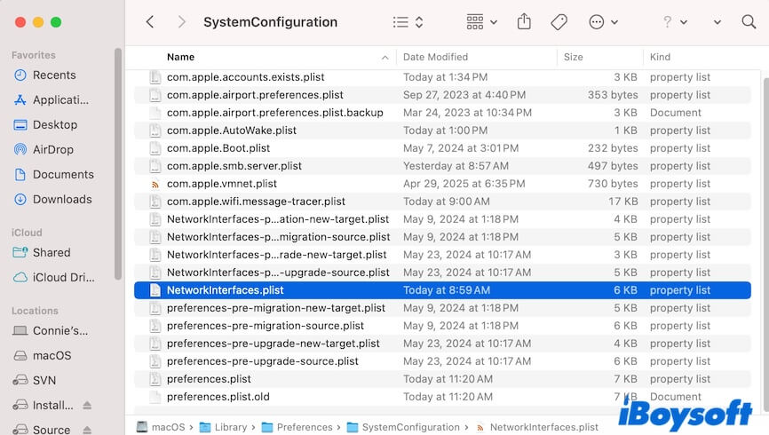 - Encuentra y mueve los siguientes archivos .plist relacionados con la red a la Papelera.