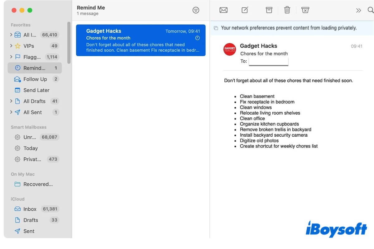 Como se describe, estás bloqueado/a para ver el contenido debido a la protección de seguridad de la red. Puedes hacer clic manualmente en la opción "Cargar contenido" para mostrar el contenido. Si encuentras molesto hacer esto cada vez que intentas ver el contenido de un correo electrónico, simplemente sigue nuestros consejos para solucionar este problema en tu Mac, iPhone o iPad.