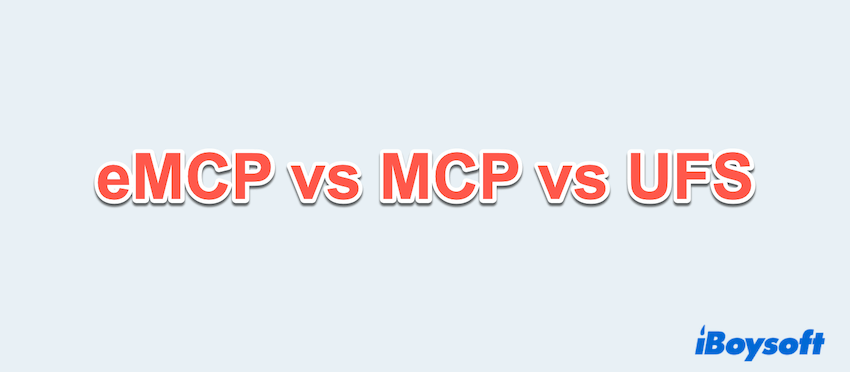 Pueden surgir muchas dudas sobre las diferencias entre eMCP vs MCP/ eMCP vs UFS, aquí, la página iBoysoft le ofrece una comparación simple:
