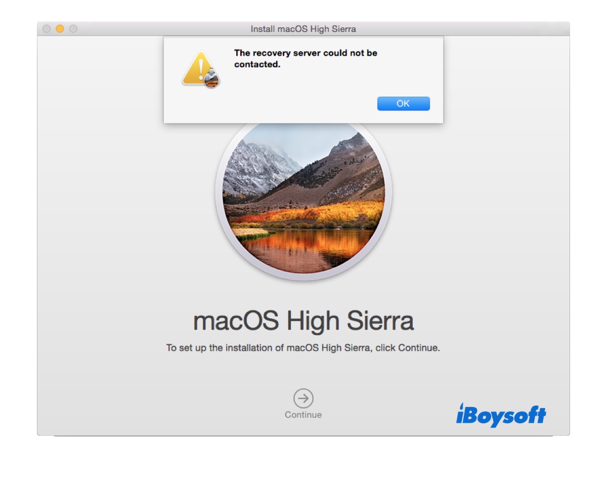 Si vous rencontrez l'erreur "Le serveur de récupération n'a pas pu être contacté" lors de l'installation de macOS High Sierra, cela suggère qu'il y a un problème dans le cadre de vérification de sécurité SSL interne. Lorsque vous cliquez sur le bouton Continuer pour installer macOS High Sierra, l'installateur contactera le serveur de mise à jour logicielle d'Apple. Si la vérification de sécurité échoue, vous verrez s'afficher l'erreur.