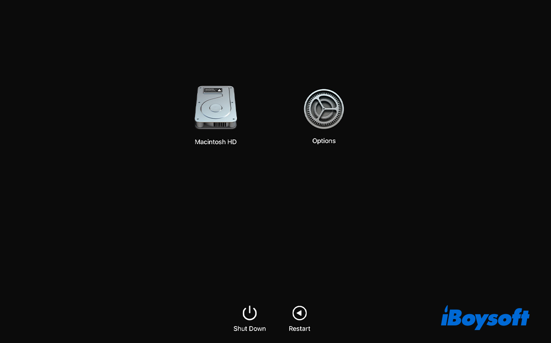 - Appuyez sur le bouton d'alimentation pour allumer le Mac et maintenez immédiatement la touche Option enfoncée jusqu'à ce que vous voyiez les volumes de démarrage.