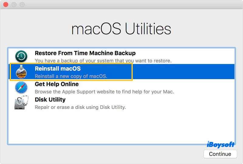 Étape 3: Choisissez Réinstaller macOS High Sierra depuis la fenêtre des utilitaires de récupération