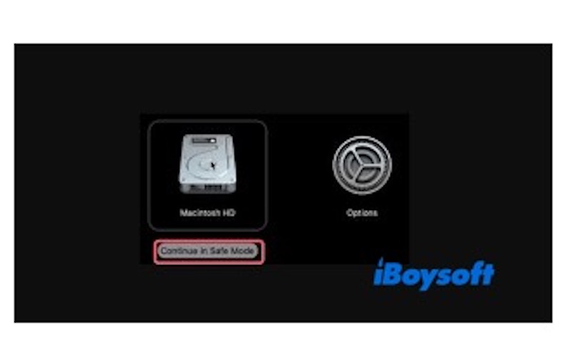 - Sélectionnez votre disque de démarrage, puis maintenez la touche Shift et cliquez sur "Continuer en mode sans échec."