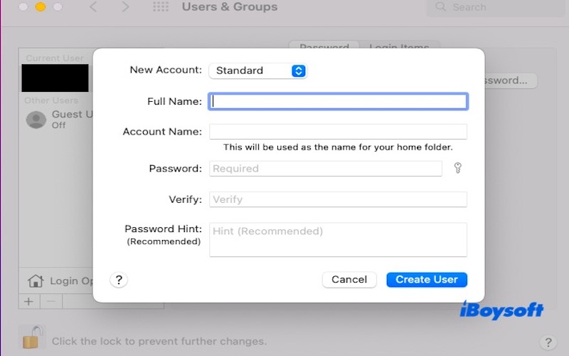 - Allez dans Préférences Système > Utilisateurs et groupes.