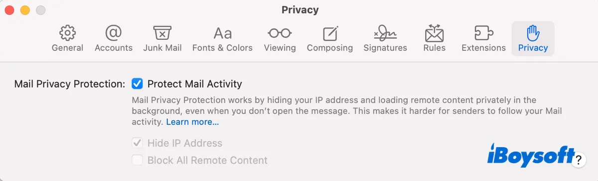 Certains expéditeurs suivent le téléchargement du contenu à partir de leur serveur, ce qui leur permet de connaître votre adresse IP, votre emplacement et si vous avez ouvert cet e-mail. Ce comportement va à l'encontre de la règle de confidentialité de l'application Mail, qui masque votre adresse IP et vos activités en ligne pour éviter d'être suivies par des tiers, c'est pourquoi vous voyez l'avertissement selon lequel les préférences réseau empêchent le contenu de se charger.