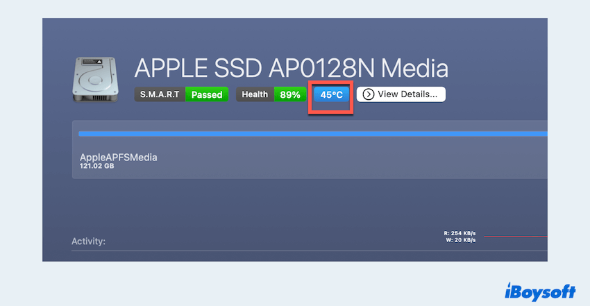 Si vous préférez une solution plus conviviale, iBoysoft DiskGeeker pour Mac propose une fonction intégrée pour surveiller directement la température du matériel. Gratuit pour voir la température et l'état de santé en temps réel, non seulement pour les disques internes mais aussi pour les disques externes.