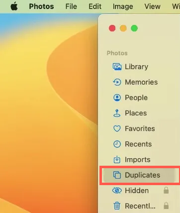 - Rendez-vous dans le dossier des doublons dans la barre latérale de l'application Photos.