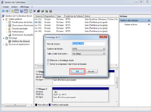 3. Cochez la case Effectuer un formatage rapide et cliquez sur OK.