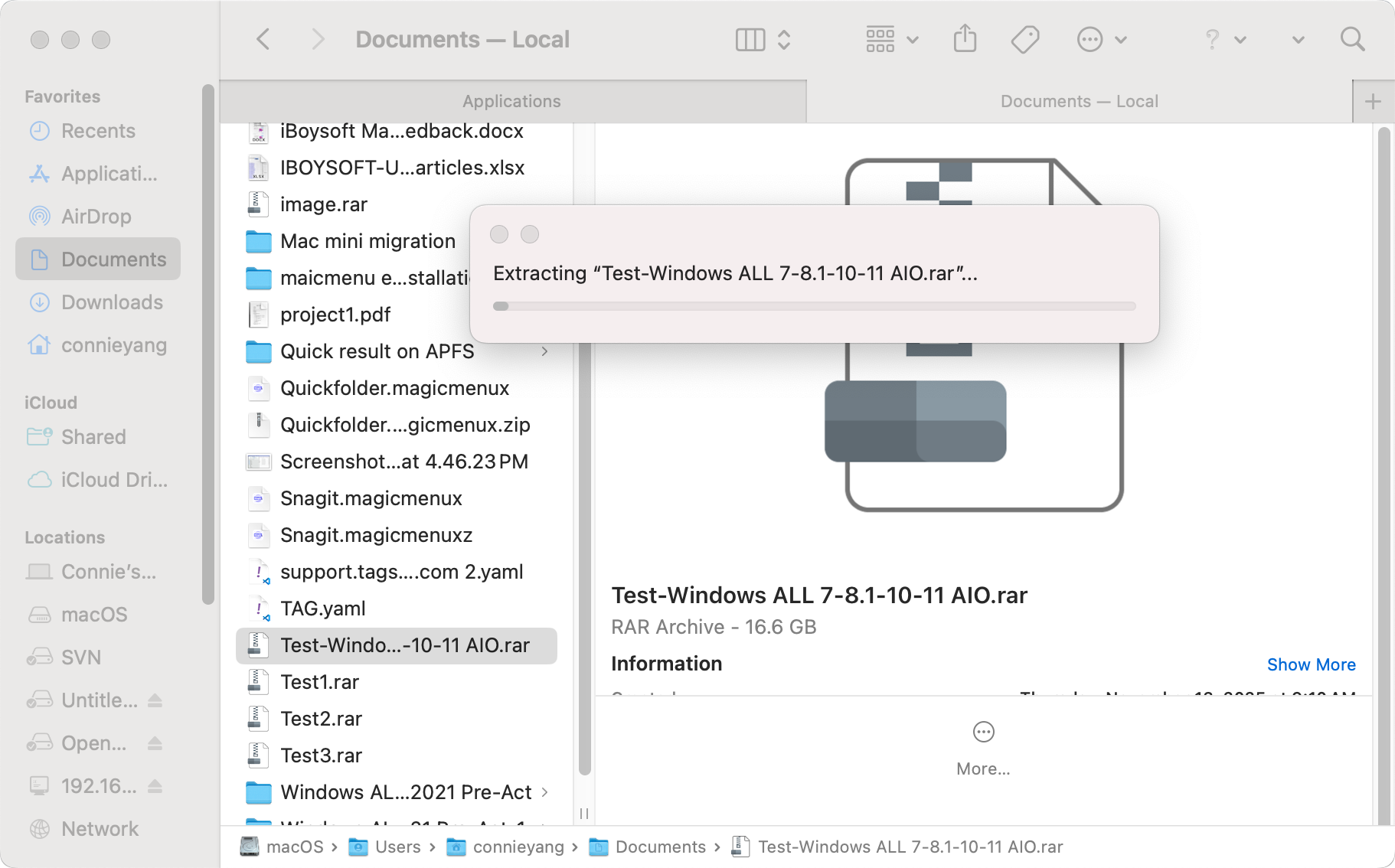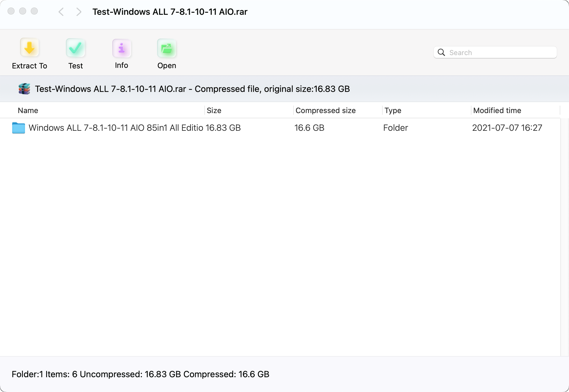 This unarchiver for Mac supports extracting popular archives, such as RAR, ZIP, 7Z, TAR, and TZIP, as well as older and less common compressed file formats.