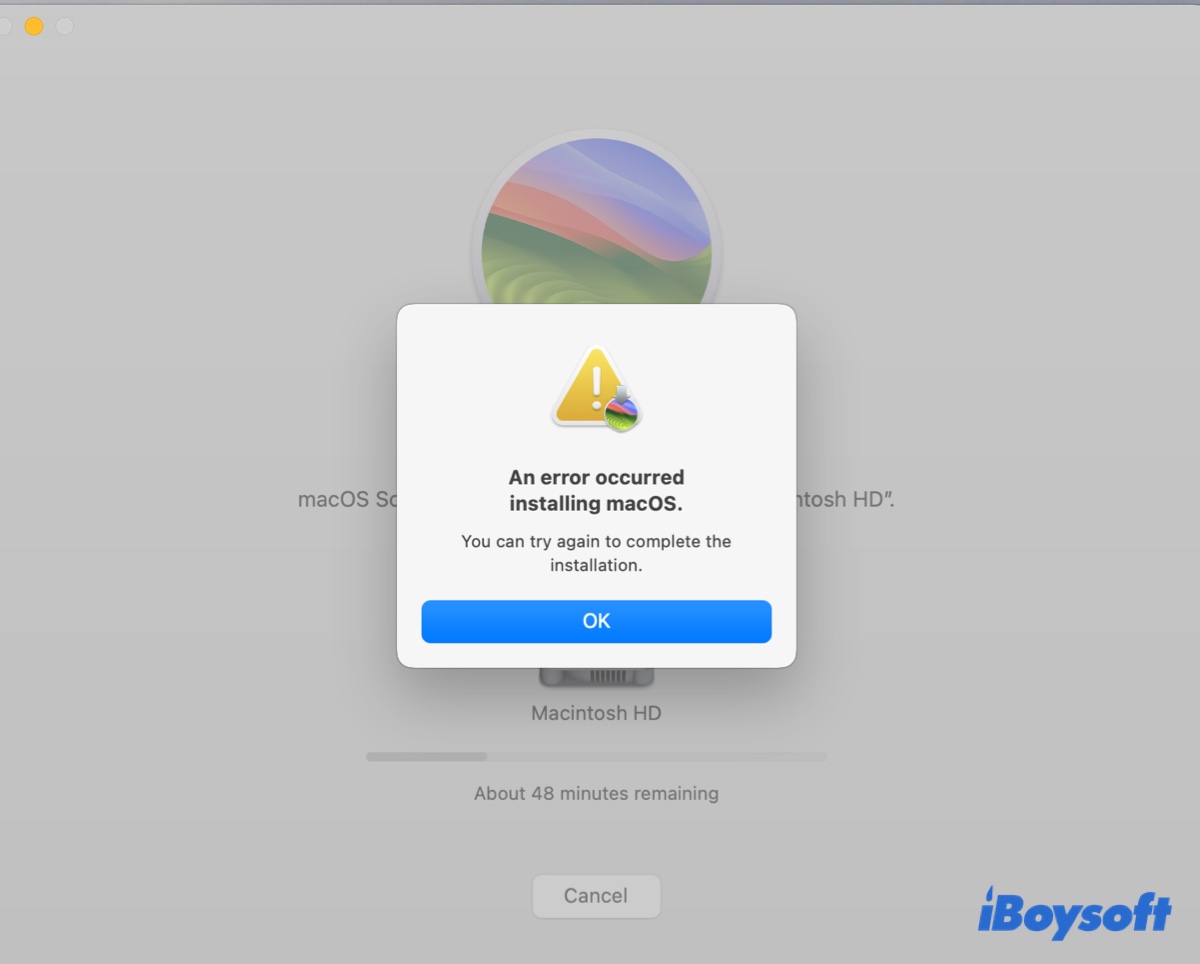- An error occurred installing macOS.
