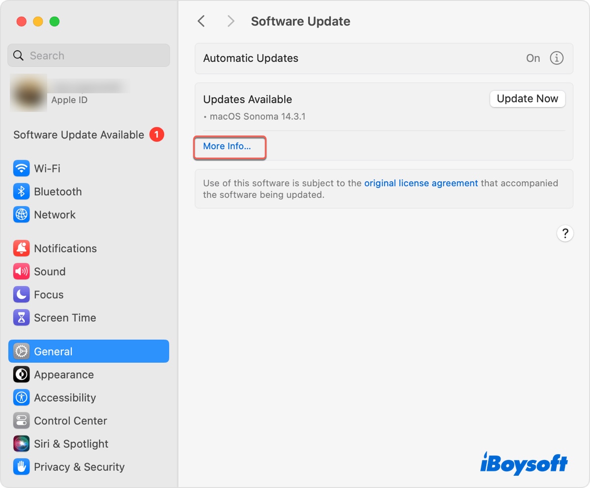 Besides, you can directly update macOS Sonoma without upgrading to macOS Sequoia or later from Software Update with the following steps: