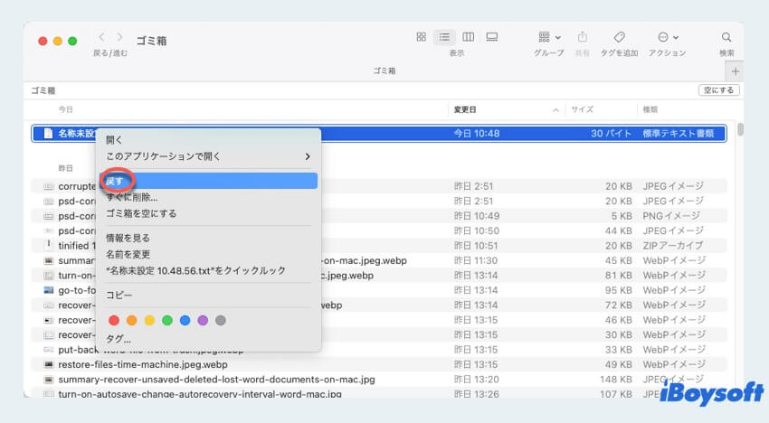 ゴミ箱に削除されていない場合、それはゴミ箱にあります。ゴミ箱で空にされている場合、iCloud、タイムマシン、またはスティッキーズデータベースを使用して復元することが可能です。そのため、可能性を高めるためにiBoysoftデータ復旧をMacで使用することを強くお勧めします。