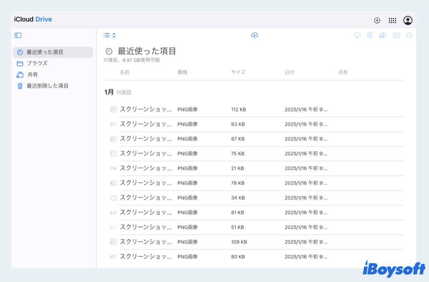 (iCloud は最近 30 日間のファイルのみを保存できます)