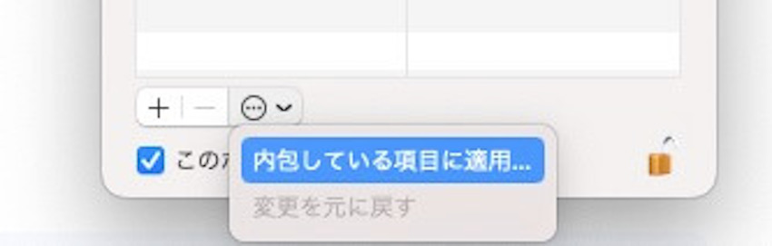 - 4. ギアボタンをクリックし、「内包している項目に適用」を選択します。