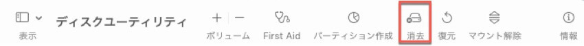 - 4. ディスクユーティリティウィンドウの上部にある [消去] をクリックします。