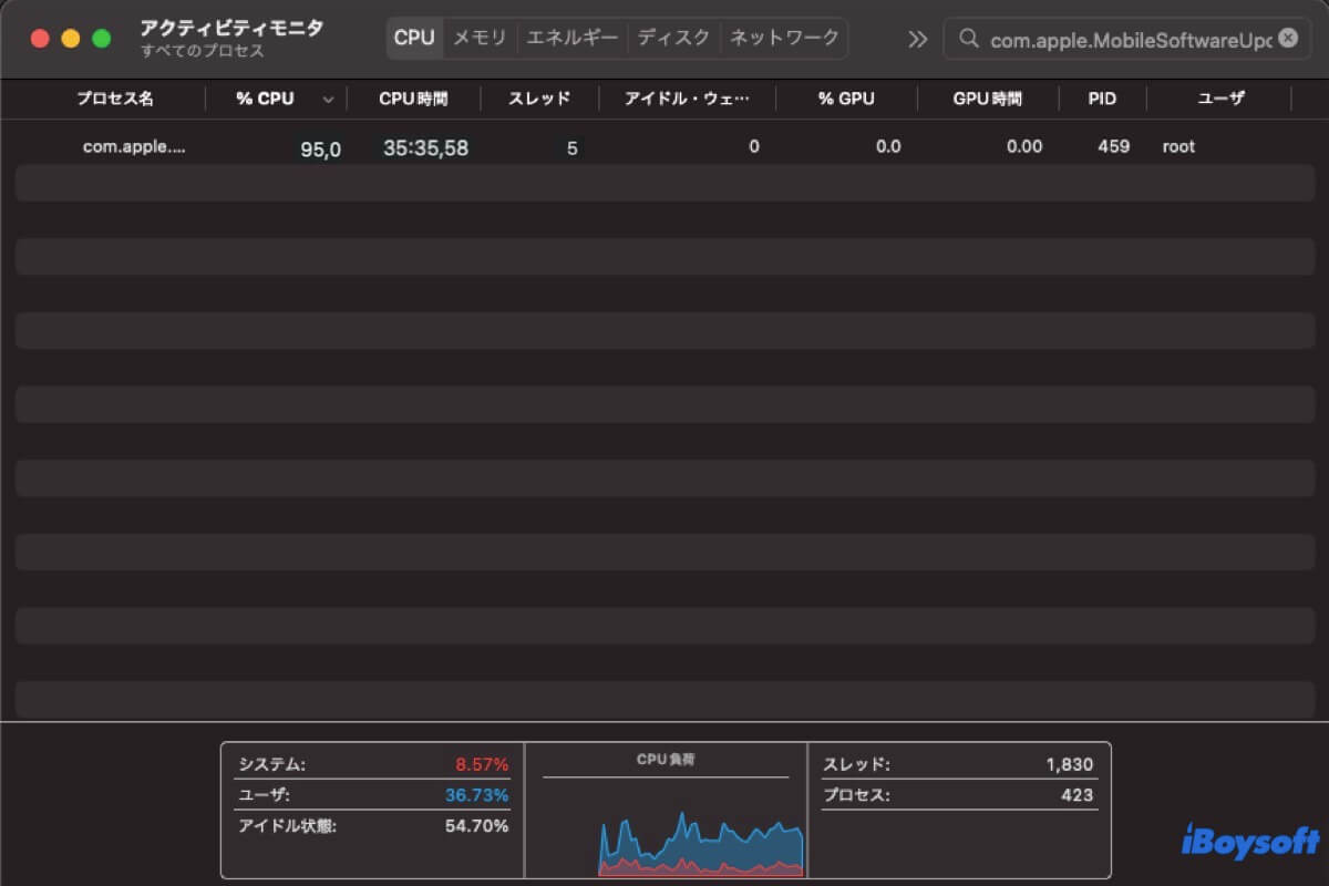 com.apple.MobileSoftwareUpdate.UpdateBrainServiceの CPU 使用率が高い