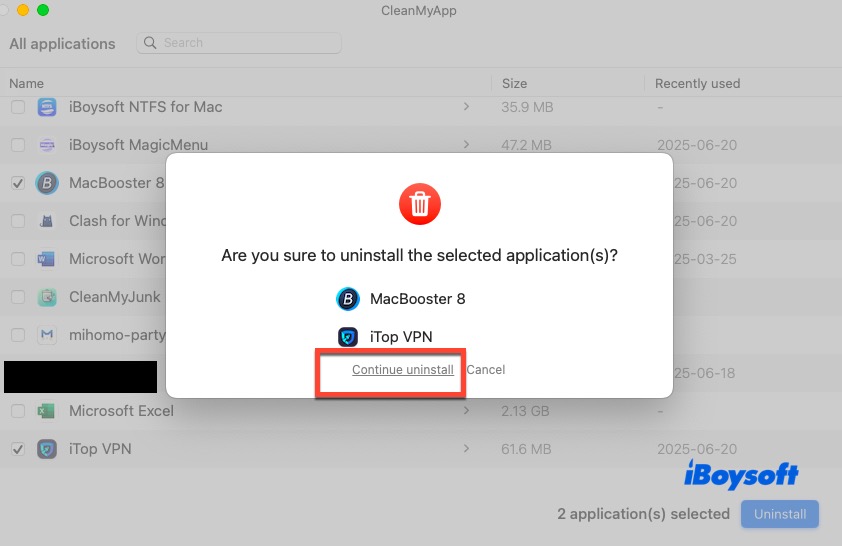 Aqui está como desinstalar o MacBooster usando o CleanMyApp.