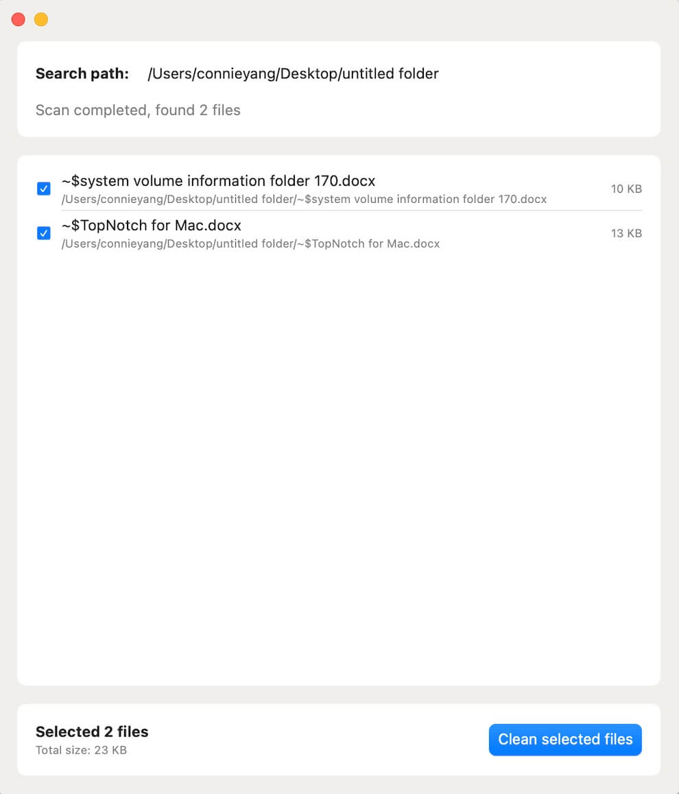 - Escolha os arquivos temporários do Office que deseja excluir e clique em Limpar arquivos selecionados para excluí-los do seu Mac.