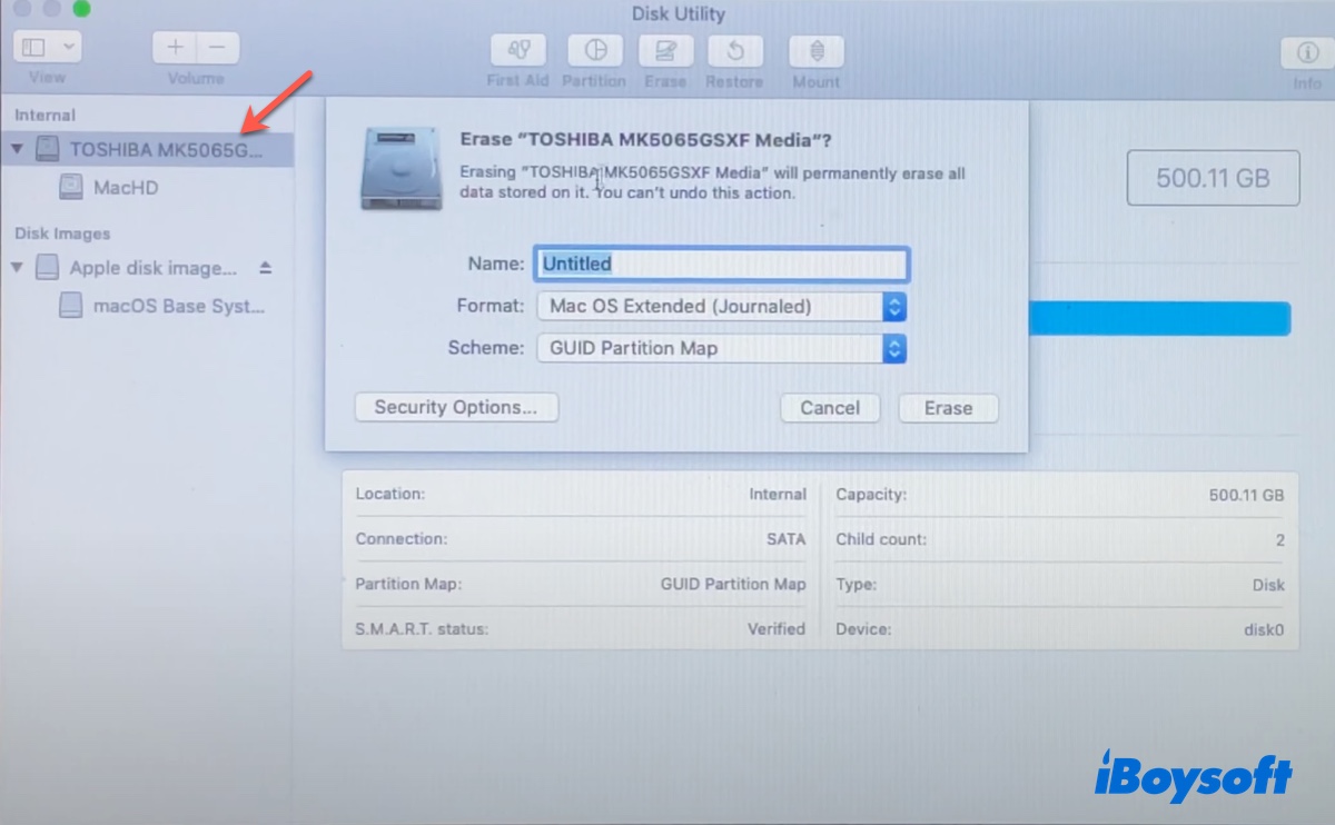 - Selecione APFS como formato para macOS High Sierra e posterior; escolha Mac OS Extended (Com journal) para macOS Sierra e mais antigo.