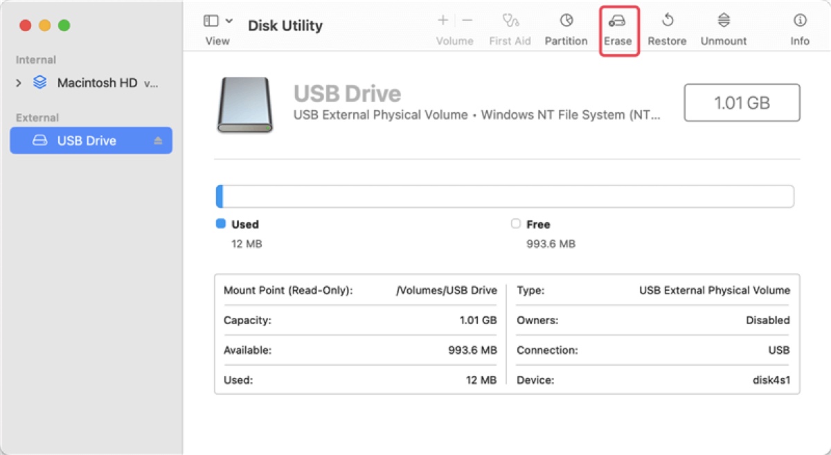 Se não houver arquivos importantes no drive NTFS ou se você puder fazer backup em um PC com Windows, considere reformatar o drive com um formato compatível com o Mac, como APFS, Mac OS Extended (Journaled), etc.