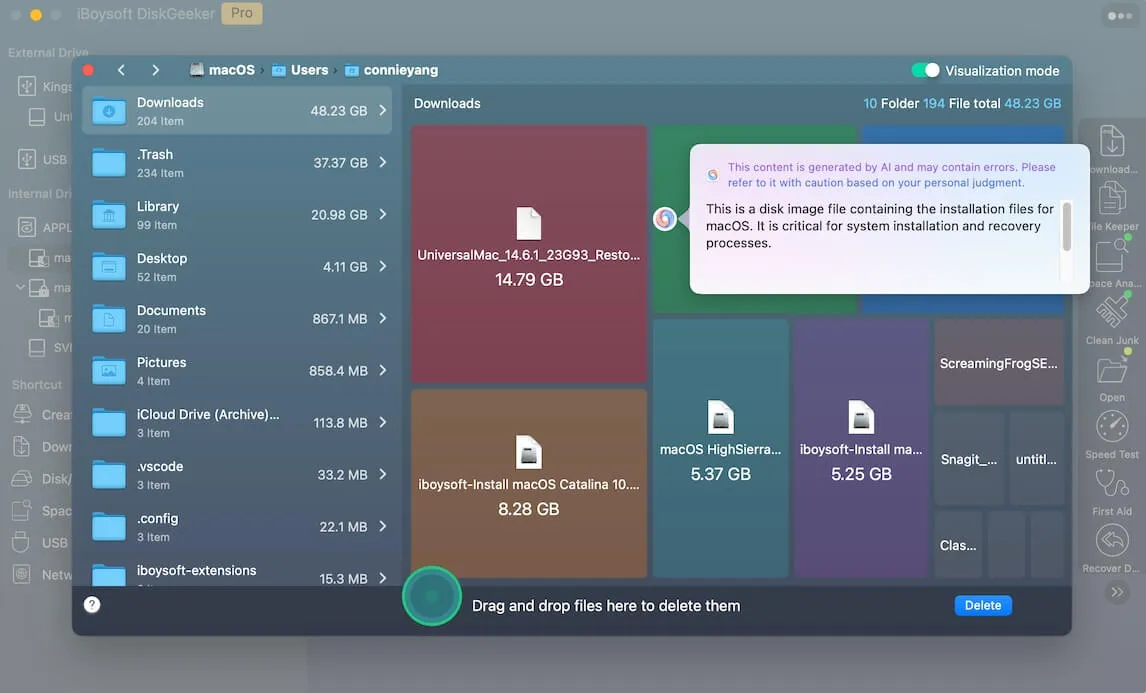 Besides, its AI function explains the purpose of a selected file, helping you decide whether to delete it.