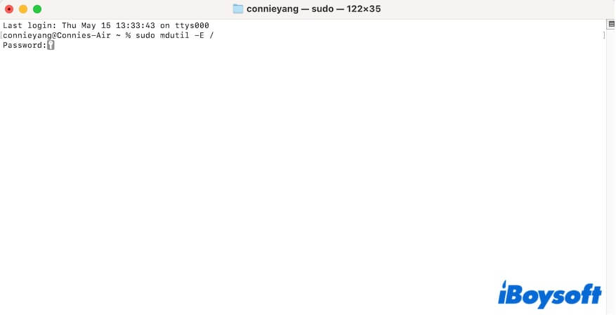 - Aşağıdaki komutu girin. sudo mdutil -E /Bu komut ana diskinize Spotlight dizinini silerek sıfırdan yeniden oluşturacaktır.